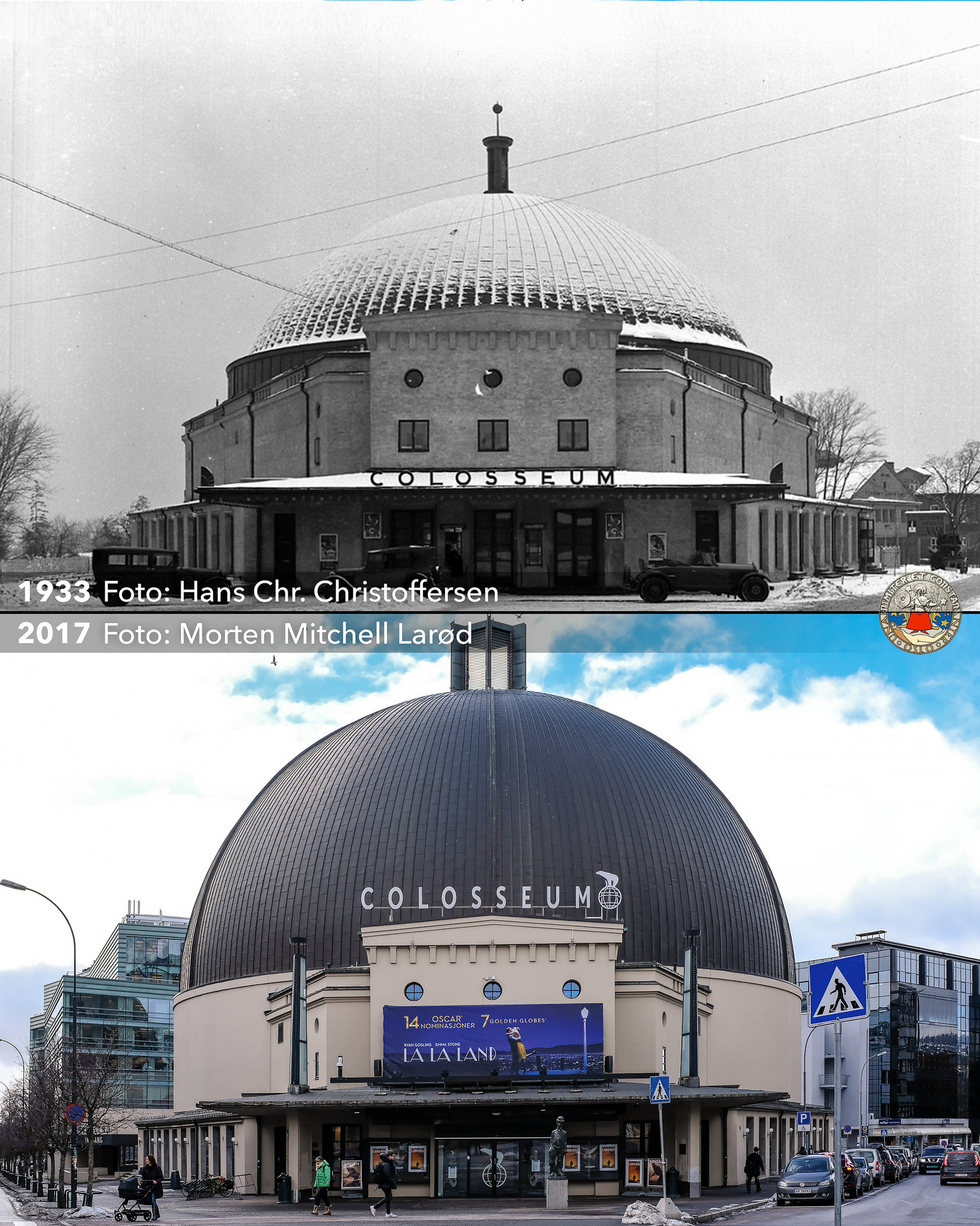 1. juli 1963 behandlet Kinostyret og Oslo formannskap kinosaken og bestemte at Colosseum skulle gjenreises. Firmaet Stensrud & Søn fikk oppdraget som hovedentrepenør og engasjerte arkitekt Sverre Fehn til gjenoppbyggingen. Fehn bestemte at kuppelen skulle bli større enn i den opprinnelige bygningen. Videre så arkitekten for seg at kuppelen skulle dekkes med bronse og bli like stor som den på Peterskirken i Roma. Fordi prislappen ble for stor, ble kuppelen i stedet dekket av gummiasfalt og hvit maling.
